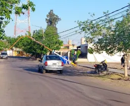 El vehículo se llevó puesto todo el tendido eléctrico por la altura del acoplado, dejando a oscuras a una cuadra entera. ¡Por suerte, el milagro se hizo presente y nadie salió lastimado!