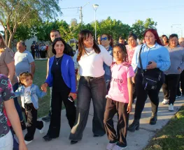La intendenta Municipal de la Ciudad de Chimbas, Daniela Rodríguez, junto a vecinos del Barrio Conjunto llI, dejaron inaugurada la nueva plaza del lugar para el disfrute de grandes y chicos.